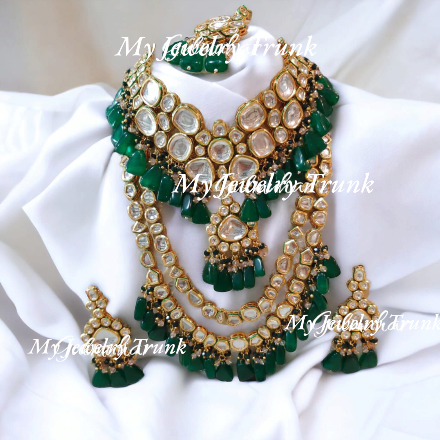 Kundan with color stone designer necklace, long necklace with tika set.