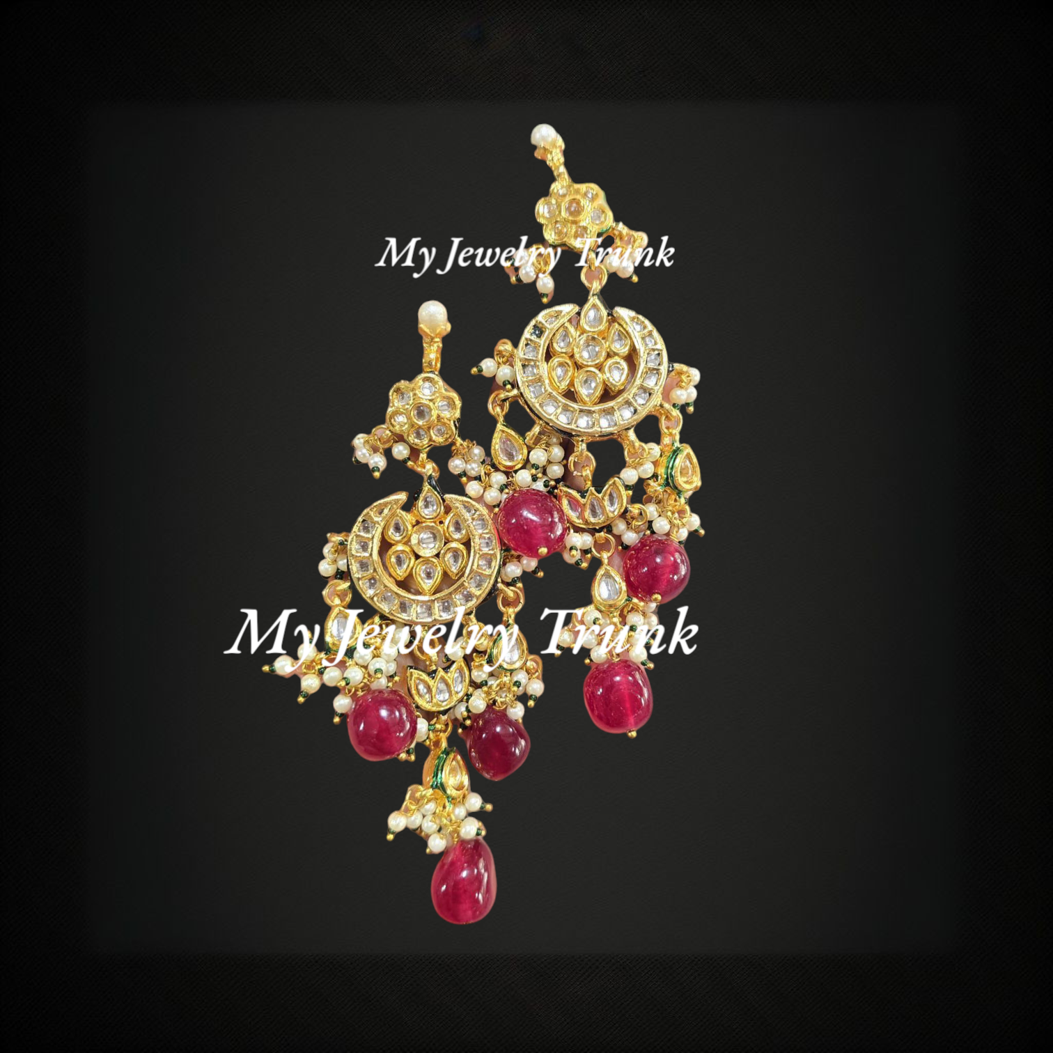Kundan, pearls & color stone long earrings.
