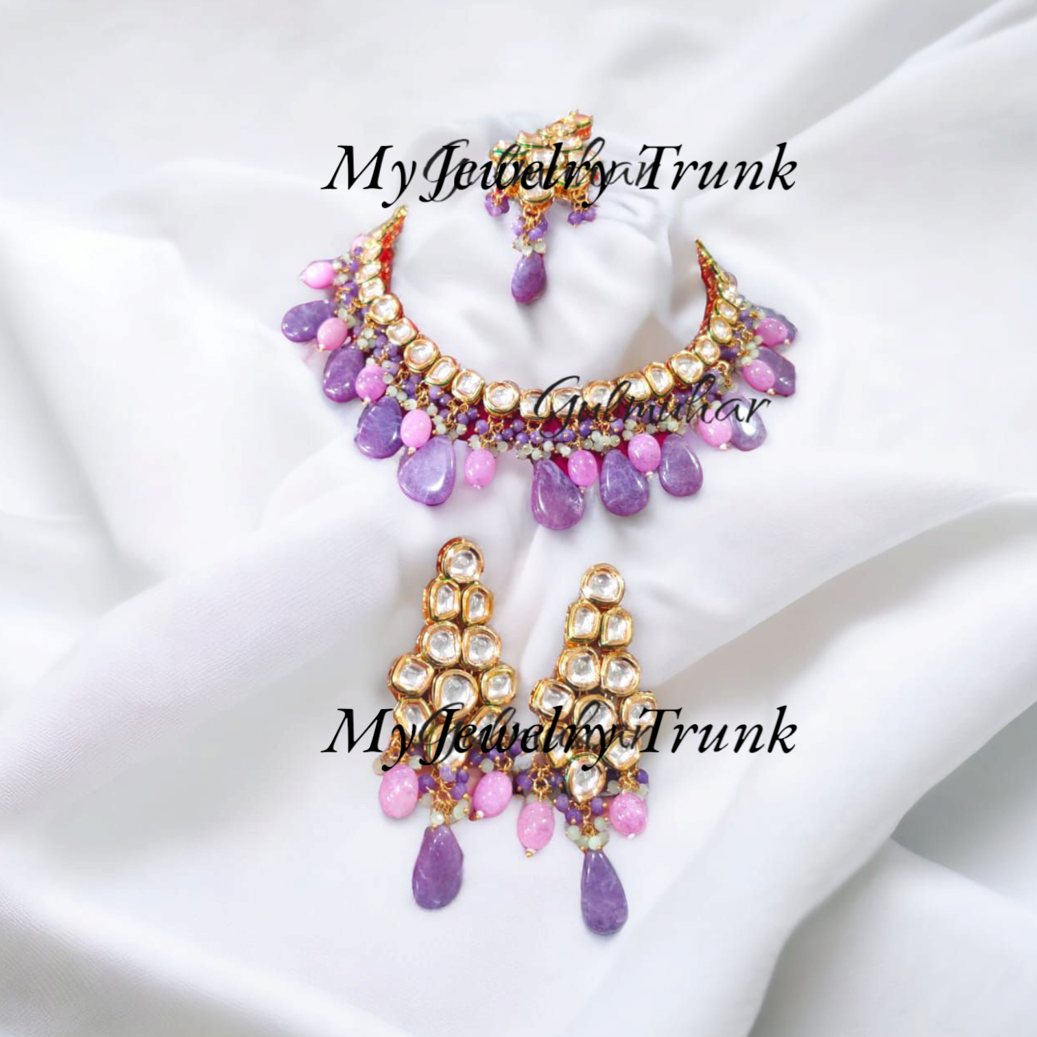 Kundan with color stone designer necklace with tika.