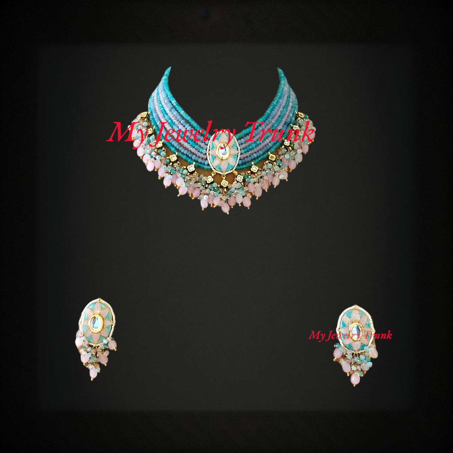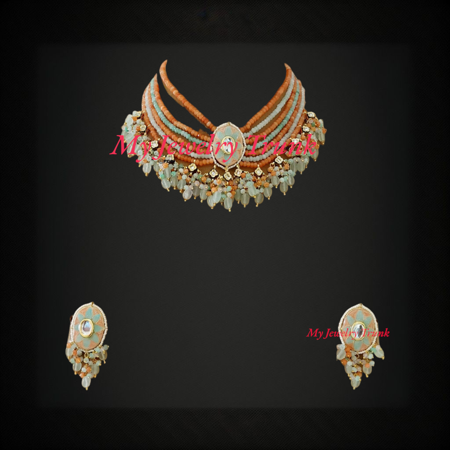 Meenakari kundan, pearl & multi color, multilayer onyx stone choker.