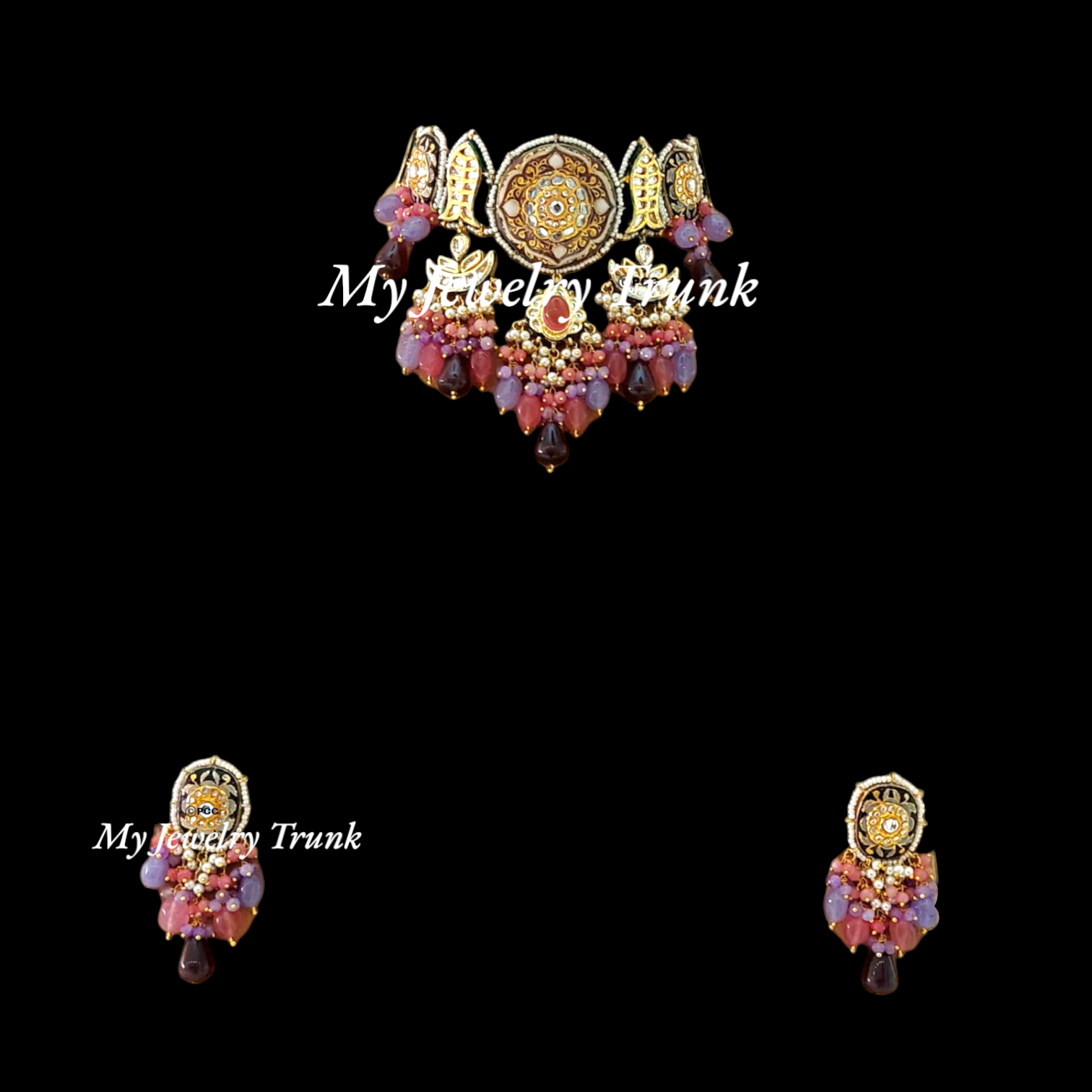 Meenakari kundan, pearl & multi color onyx stone choker.