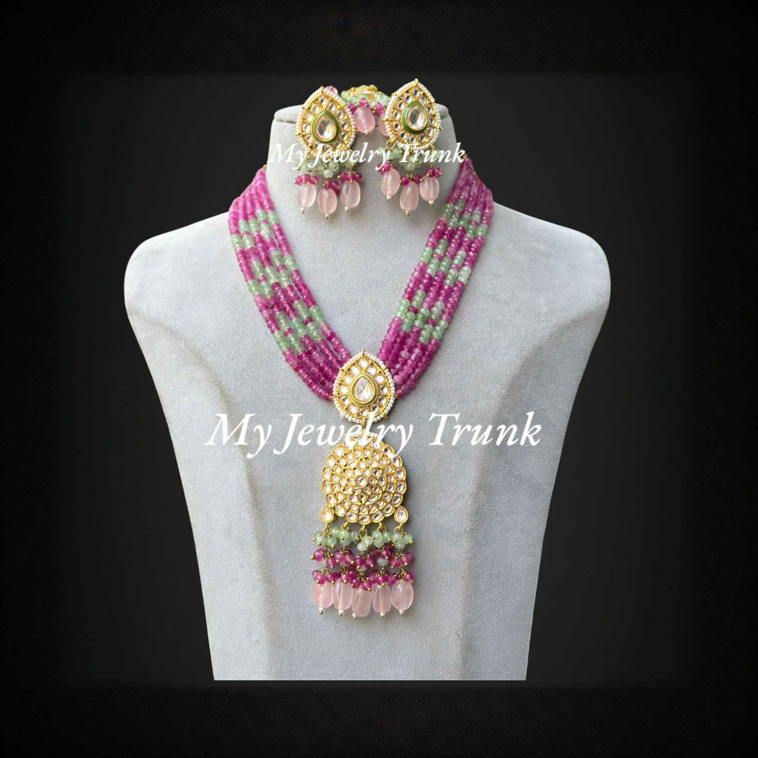 Moissanite with color stone long necklace with tika.
