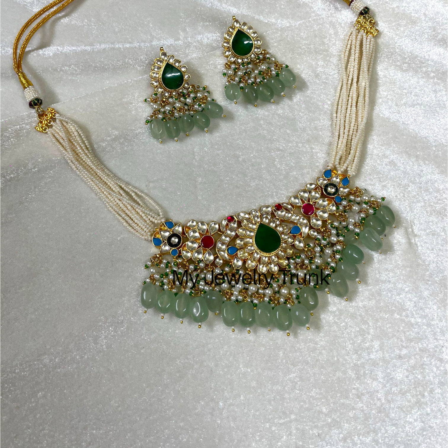 Pachi kundan with color stones & pearls choker.