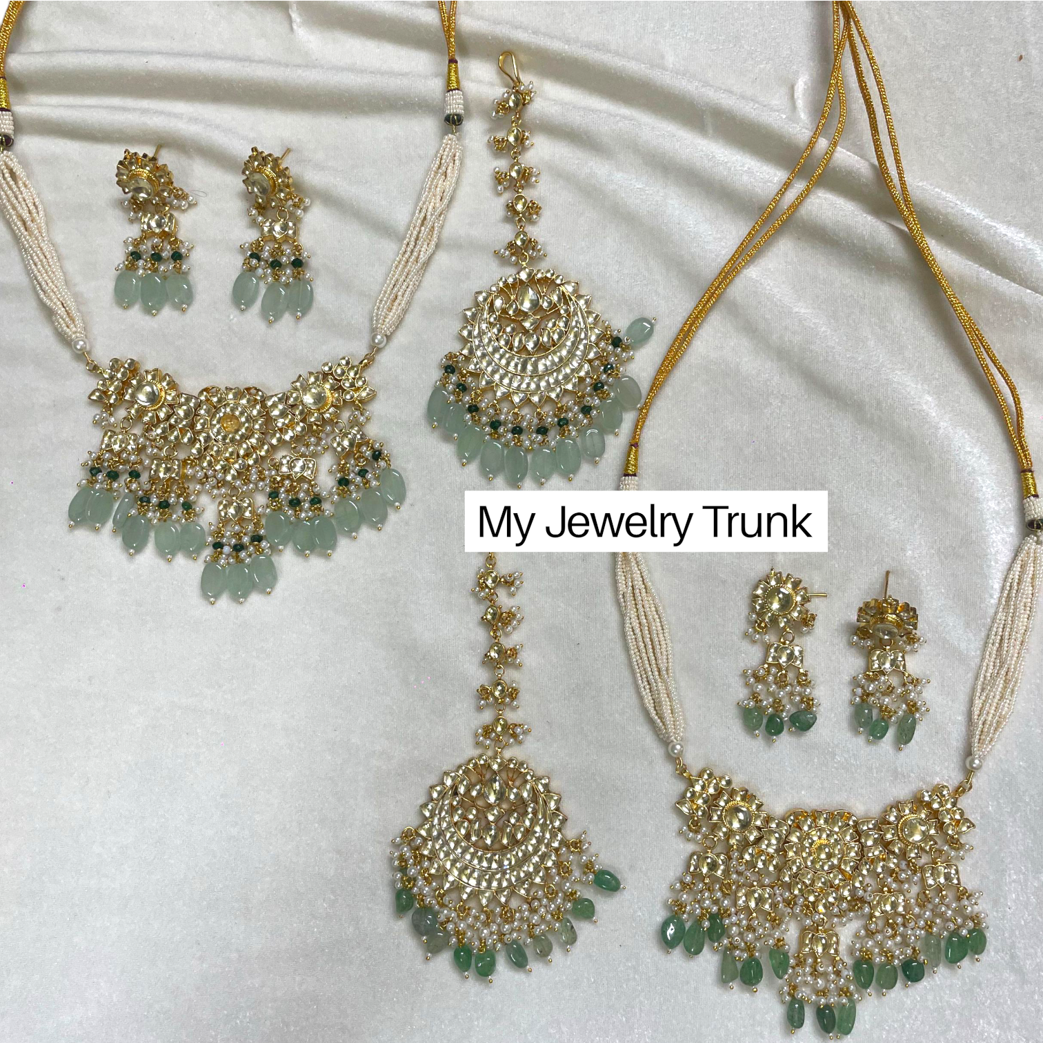 Pachi kundan, pearls & color stone designer choker with big size tika.
