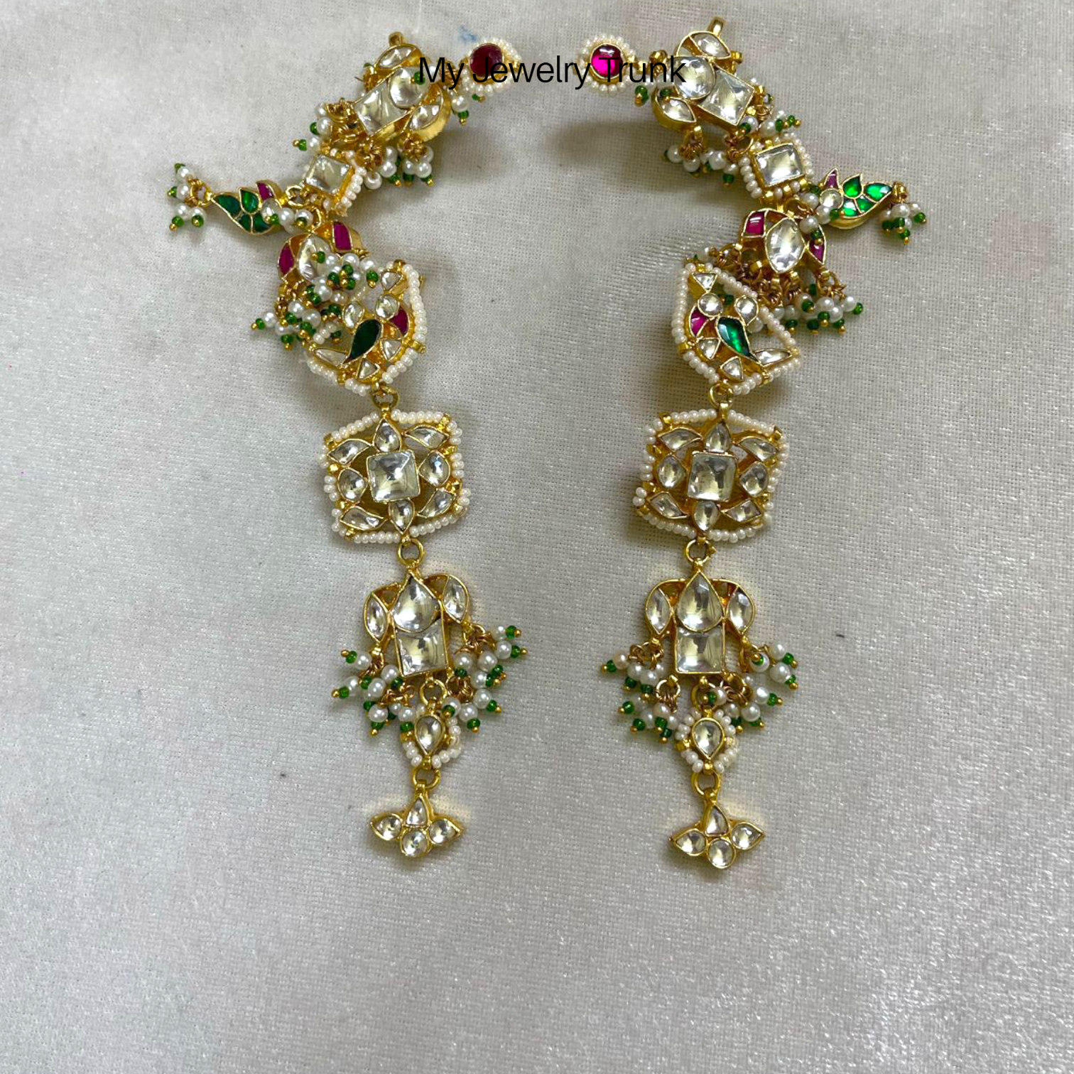Pachi kundan, pearl & color stone designer ear cuff earrings.