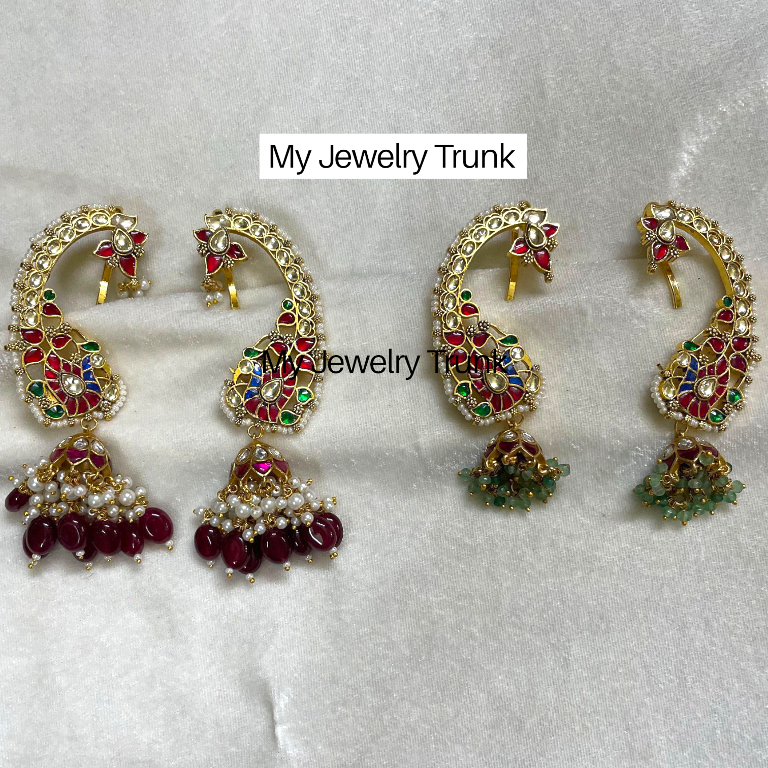 Pachi kundan, pearls & color stone earcuff earrings.
